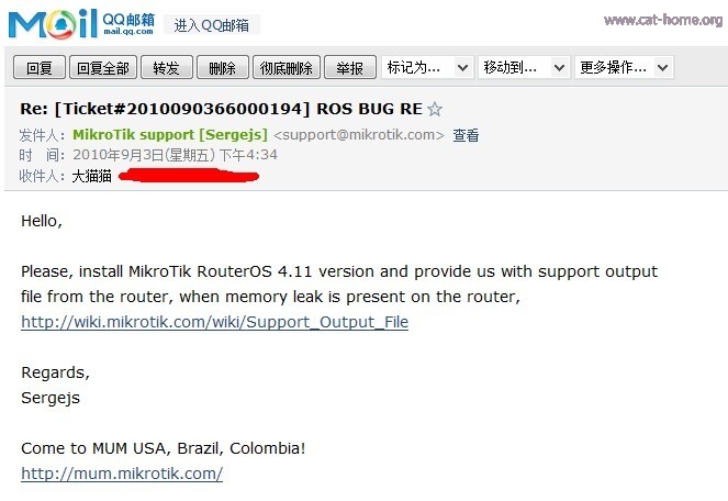 今天收到了ROS官方技术人员的回复,一看,晕倒我了。原来是要我安装4.11然后生成报告,再发报告给他们。悲剧了。我哪去找个ROS 4.11的跟他们玩,只好放弃。